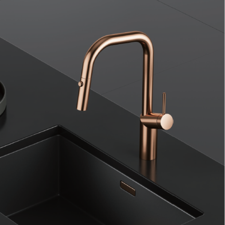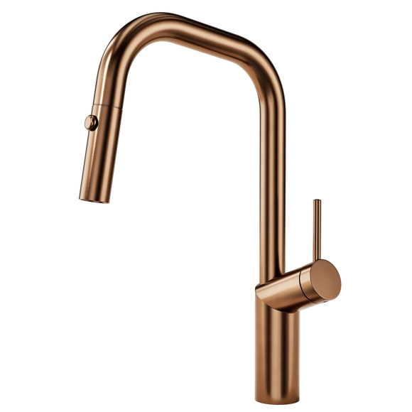 Brushed Copper - Nordic Series - Dual Spout - Kitchen Sink Mixer with Pull Out Spray Head - Elegant Faucet Design Modern Kitchens Taps Extender